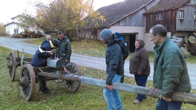 Une tradition inventée de l’autre côté du Rhin lui fait écho, puisque les bouviers attachés aux spécificités et aux plaisirs de l’attelage allemand tiennent eux aussi une réunion annuelle depuis 1998. C’est une initiative particulièrement réussie de l’avis de tous, à cause d’une organisation aussi efficace que détendue et simple – trouver un hôte (les candidats ne manquent pas), donner une date fin janvier ou début février lorsque les gens de musées sont plus libres, et voir qui vient, une vingtaine au début, une soixantaine aujourd’hui. En 2020, c’est au tour d’un musée de plein air près de Hambourg, le Museumsdorf Volksdorf, d’accueillir le groupe. Au fil des ans, les rencontres allemandes, avec un saut « à l’étranger » en 2019 en Autriche, ont eu lieu en alternance, chez des privés ou dans des musées de tailles et de vocation variées, souvent dans d’immenses sites tels le musée de plein air à Kommern ou la ferme urbaine du Domaine de Dalhem à Berlin, ou au plus rural Laboratoire de plein-air Lauresham à Kloster Lorsch, abbaye médiévale désignée patrimoine mondial par l’UNESCO, dans le Land de Hessen.