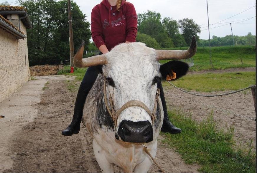 Laurent Billoux (cliquez ici pour voir) ne travaille pas ordinairement avec ses bovins dressés sur son exploitation. Il lui arrive cependant de faire parfois quelques petits travaux avec ses animaux.