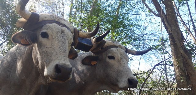 Pour réaliser des travaux autrement plus compliqués comme débarder, tirer des charges, décavaillonner, je lui ai fait faire un collier sur mesure et réglable auprès de Monsieur Collin. Et vous allez me demander : « Qu’est devenu Mr ficelle ? » Après une sélection difficile, mon petit veau a été choisi par Madame Sabine Rouas, propriétaire d’ Aston le Taureau, pour entrer dans sa petite troupe et assurer des spectacles de dressage.