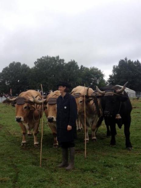 Mine de rien, nous commençons les exercices : arrêt, tourner…la petite suit les deux bœufs gris, et nous félicitons largement son engagement exemplaire !