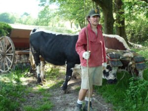 Il utilise des cordets (anneaux d’attelage) en bois de charme torsadé. Il attelle au tombereau, le véhicule à tout faire dans les campagnes.