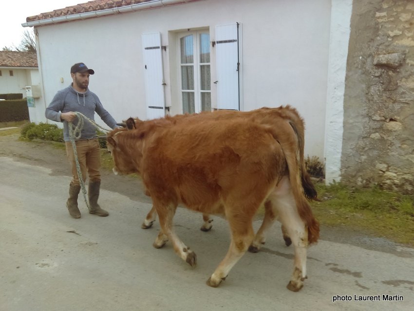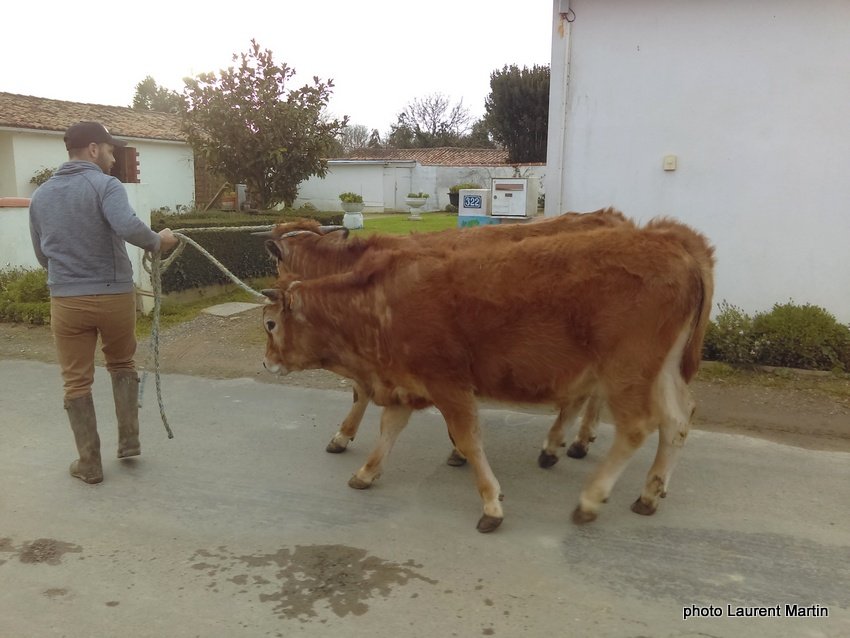 Ce matin là, Véronique mon épouse et moi même accueillons sept passionnés de bovins et de traction bovine.