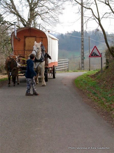 Ce sont les vaches qui sont attelées à notre roulotte. Nos ânes sont retournés travailler sur une ferme au pays basque.