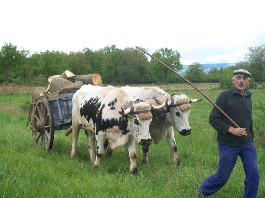 Antoine Riocreux a travaillé toute sa vie avec des bovins. En 1975 lorsqu’il s’installe en prenant la suite de son père, il travaille pendant deux ans avec les boeufs paternels. Après leur vente, il dressera, sans discontinuer jusqu’à aujourd’hui, des paires de vaches pour travailler sur les quinze hectares de son exploitation.