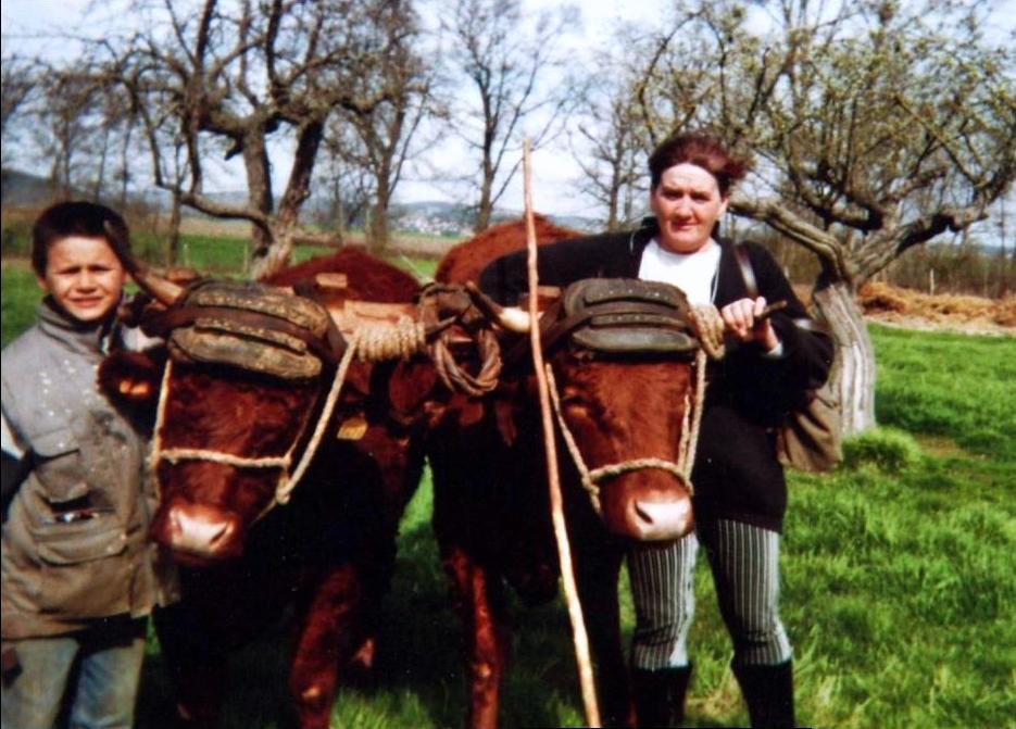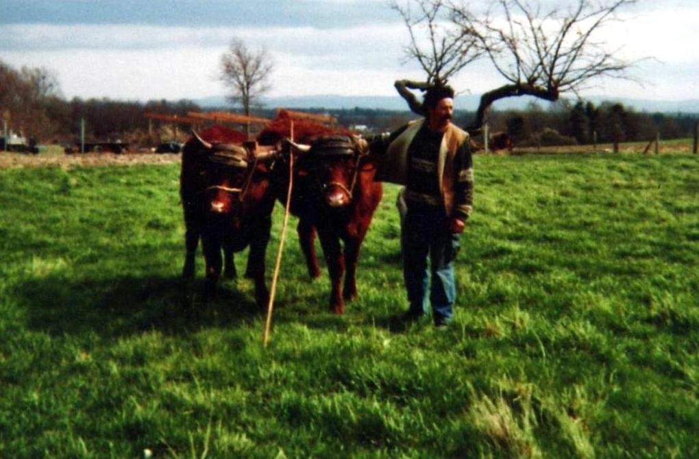 Pascal Daval n’est pas exploitant, mais possède quatre vaches Salers dont deux dressées. Il travaille avec ses animaux pour charrier son bois de chauffage et son fumier.
