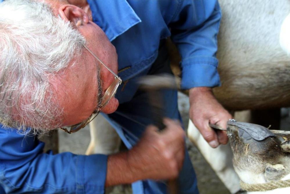 Jean Ousset a 74 ans.  Le 3 avril 1954, il signait un contrat d’apprentissage dans la forge de son père à Labroquère (31). Ce dernier lui forge alors un brochoir avec un manche en frêne. C’est ce même outil qui va aujourd’hui servir à ferrer les bœufs gascons d’Olivier Courthiade,  58 ans plus tard.