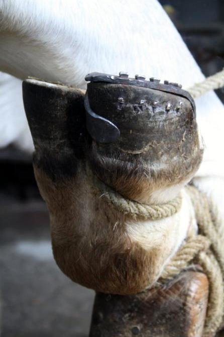 Le pied des bœufs se pare peu. Composé de deux onglons, on lui pose donc huit fers. La paroi du pied est très fine ce qui nécessite une grande précision au moment d’enfoncer les clous. Aujourd’hui les clous à bœufs n’existent plus, ils avaient la tête plus plate que ceux utilisés pour les chevaux ! Les fers non plus d’ailleurs ! » Mais il y a cinq ans alors que Jean s’arrêtait dans une station d’autoroute sur la route du rendez-vous chez l’oculiste pour son épouse, celle-ci attire son attention sur un prospectus. Celui-ci mentionne une vente aux enchères où sera vendue une tonne de fers à bœufs.  Imaginez la tête du commissaire-priseur lorsque Jean lui a annoncé vouloir acheter la totalité des fers !