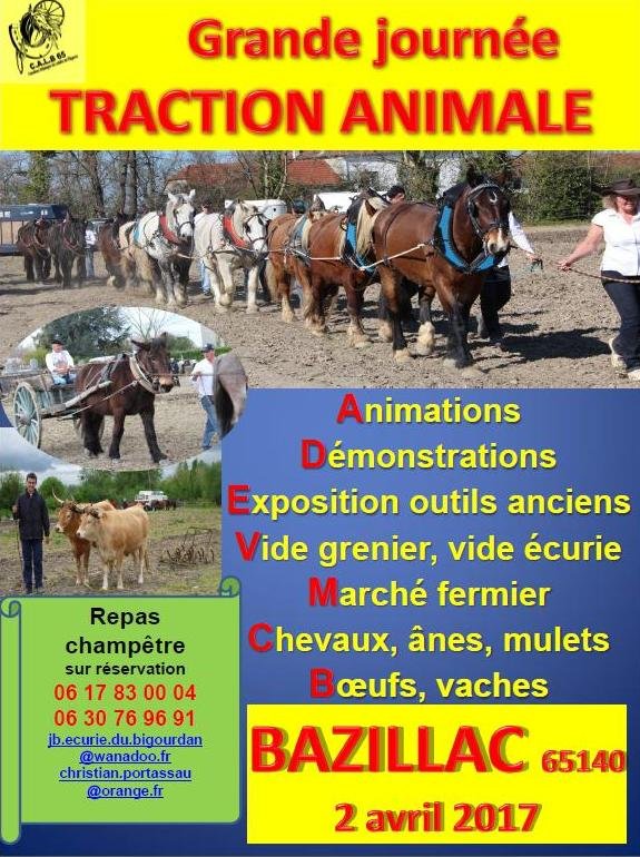 La journée traction animale organisée par les « Cavaliers attelages de loisirs en Bigorre » aura lieu le dimanche 2 Avril à Bazillac (65).