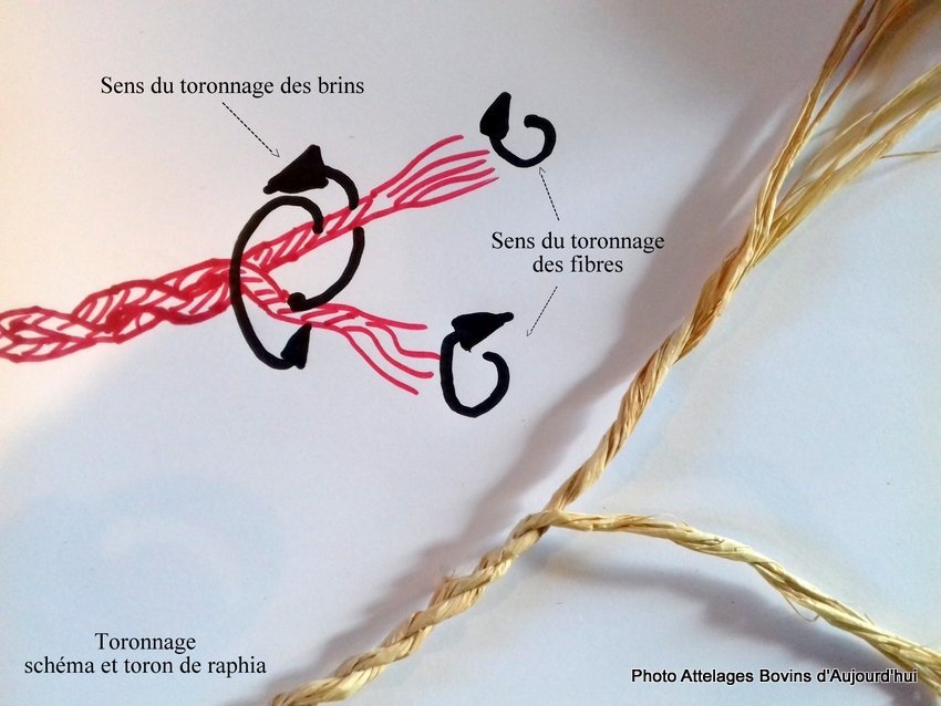 Une fois mariés, ces deux brins n’en forment plus qu’un seul,  qui fera office du second brin d’attache sur la tête des bovins.