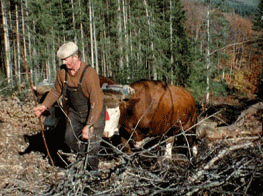 Pour le trait, quelques grandes races émergent, issues d’une heureuse démarche de spécialisation entamée vers 1820. Limousins, Gascons, Charolais-Nivernais gagnent la faveur des chefs d’exploitation. Beaucoup préfèrent la « race blanche » à toutes les autres : rompus pour la plupart aux durs travaux forestiers en Morvan (qui fournit aussi d’excellents bouviers), ces bœufs achetés vers 4-5 ans travaillent sans difficulté 5 à 6 ans avant d’être réformés, engraissés (avec les pulpes de sucreries, les drêches de brasserie ou de distillerie) et revendus pour la boucherie. D’autres apprécient la vitesse du pas et la robustesse des Gascons mais déplorent la difficulté à les engraisser… On sait aussi que la fréquentation de marchands spécialisés et que les réseaux de foires ont pu influencer le choix des exploitants. Il n’en demeure pas moins qu’il existe, comme pour le choix des chevaux, une grande homogénéité des remontes : il est rare de voir dans les étables des Salers voisiner avec des Aubrac !