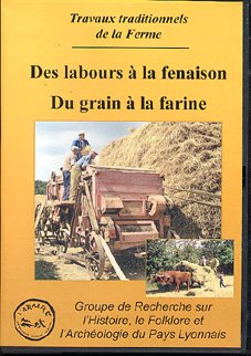 Du grain à la farine retrace le cycle du grain au fil des saisons. L’histoire commence avec les labours d’automne : le brabant est tiré par une paire de bœufs, des salers, Rouge et Mignon. Quelques jours après, la terre sera ensemencée à la main avant le passage de la herse pour enfouir le grain qui lèvera lentement avant les premières gelées. De mois en mois, de nombreux et beaux épis se formeront. En été, c’est à la faux puis à la moissonneuse-lieuse qu’ils seront coupés, mis en gerbe et rassemblés en meule. Août marque le début des battages. Installée à proximité du gerbier, la batteuse démarre et monte rapidement en puissance ; une quinzaine de personnes sont mobilisées pour son fonctionnement, parents, voisins, amis, tous ont répondu à la demande du fermier. Au fur et à mesure de la journée, le grain sera stocké dans le grenier de la ferme. Il servira aux semailles prochaines, à la nourriture du bétail et quelques sacs iront au moulin pour produire une belle farine. Les images ont été tournées dans les Monts du Lyonnais, de 1997 à 2001, par Henri Bougnol et Alain Houry (pour la moissonneuse-lieuse). Le montage vidéo a été réalisé par André Lacour. DVD Vidéo Durée : 28 min.