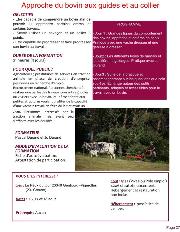 Lieu : Centre de recherche et de formation pour bovins de traction