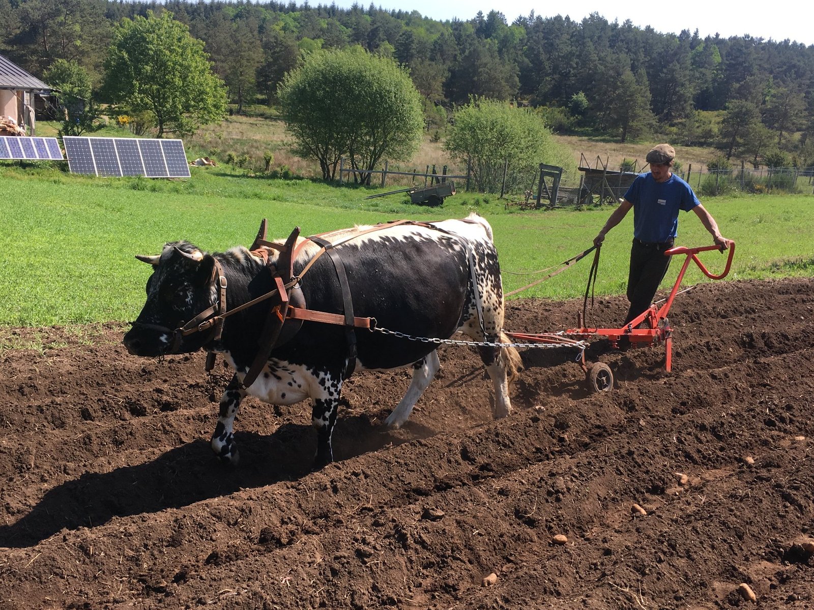 Le programme initial a été pleinement utilisé : labour sous les yeux de nombreux spécialistes (avec l’intelligence combinée maison, il a même été possible d’améliorer le tracé des raies avec la charrue réversible), excellentes présentations sur le travail avec des personnes en situation de handicap et sur le travail avec les bovins en Australie, bonnes discussions sur les différents types d’attelages possibles et les conditions nécessaires, avec du matériel à montrer, y compris un nouveau joug australien de type Queensland. Il y a aussi eu des tours en charrette avec un bœuf… et beaucoup de nourriture.