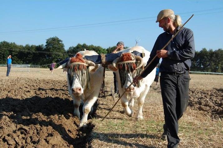Fête des moissons en 2011 à Villers pol, travail des boeufs