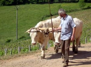 Laurent Billoux est éleveur de Charollais à Charolles même. Il est aussi dresseur de chevaux et possède des percherons. En 2004, lors d’une fête autour de l’attelage, il rencontre Michel Nioulou passionné de matériels agricoles charronnés et d’attelage. Ils décident en 2005 de dresser une paire de Charollaises. Une seconde paire est dressée en 2006. En 2010 c’est une paire de boeufs qui est mise en route. Mais ils n’en gardent qu’un seul au travail qu’ils attellent avec l’une des vaches. Ils participent régulièrement à des fêtes dans leur région de Bourgogne.