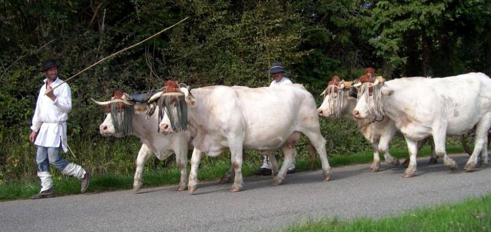L’attelage conduit par Thierry Dupré est l’un des rares équipages encore actifs, représentatifs de la race mirandaise. «Il est important de préciser que ces bovins remarquables – plus que 400 femelles seulement dans le monde !- sont menacés de disparition, au même titre que les Lourdais, les Castas, les Béarnais…, ces représentants des petites races locales, dont le patrimoine génétique est en péril…», explique Patrick Estrade chargé de l’opération.
