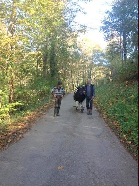 Après avoir rencontré Philippe Kuhlmann à la fête de la vache Nantaise en 2014, Agnès et Luc Bernard se sont rendus chez lui à Soultzeren (68), pour apprendre à travailler en solo avec leur Boeuf « Cassis ».