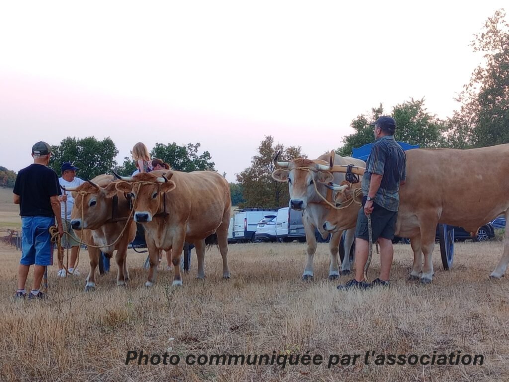 Pourquoi avoir formé des bovins à l’attelage ? C’est en réponse à une demande de l’association « Gens de Terroir » qui organise un spectacle ayant lieu tous les étés depuis 2004 : Les paysanneries . Ce spectacle est une reconstitution de la vie en milieu rural Lot et Garonnais fin 18eme siècle début 19eme.