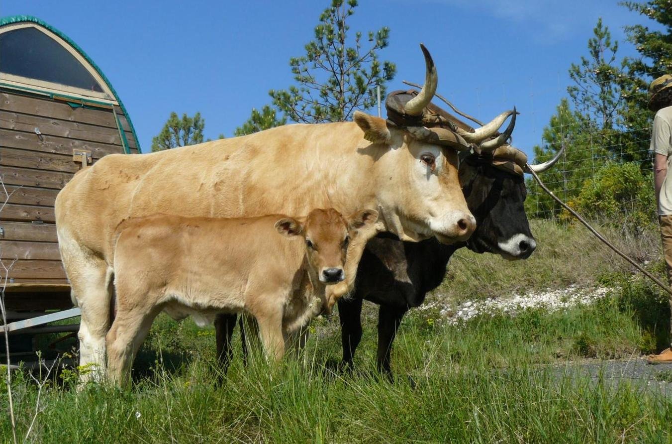 Dès que René commença à être un peu autonome, son père qui néanmoins l’accompagnait toujours, le laissait chez un client le matin, l’aidait à commencer le travail, puis partait, pour lui aussi, faire un joug de son côté, chez un paysan des alentours. En fin d’après-midi, son travail fini, le père repassait chez le premier client pour retrouver son fils et l’aider à terminer, en vérifiant que le travail, sur mesure, convenait bien. Car, oui, dans ce pays comme dans beaucoup d’autres cela dit, un joug, c’était du sur mesure ! Dans l’Aveyron particulièrement quand même. Il fallait qu’elles présentent bien, les bêtes, au joug ! Surtout les bœufs, sas qué1 (m’aurait dit René) dans les grandes fermes, ils faisaient la fierté des bouïèrs2. C’était à qui avait une paire dont les cornes se croisaient le plus élégamment au-dessus du timon ! Dans les petites fermes, on joignait plutôt des vaches. Il fallait que ça puisse travailler, ça oui ! Mais après, l’esthétique ne primait pas toujours autant.