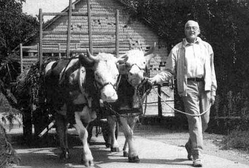 5. L’auteur travaille en Suisse avec deux vaches: avec un collier bovine traditionnelle (à droite) et le col suisse simplifiée (gauche).