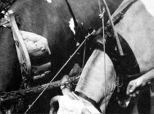 Il est curieux de noter que le harnais à collier, malgré ses qualités reconnues, a été réservé presque exclusivement aux chevaux à travers les siècles. Ce n’était pas, par exemple, adapté aux bovins ou d’autres animaux de trait comme les ânes et les chameaux. Même en Europe, les bovins ont traditionnellement été soumis à des jougs cruelles et inefficaces.