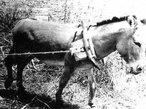 Dibbits constaté que deux ânes attelés avec le collier suisse pourrait labourer le sol léger ainsi que deux bœufs de travail sous un joug.
