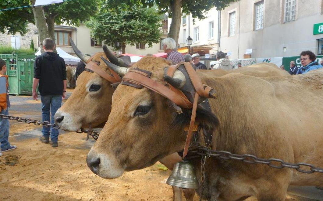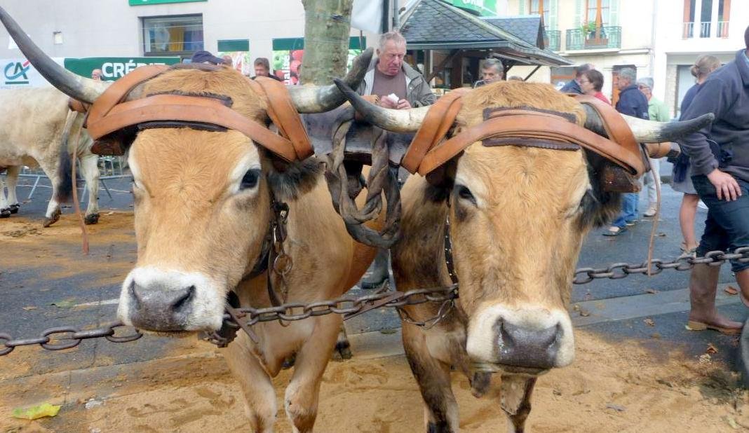 Quand nous arrivons, les frères BOS sont déjà là avec leur paire de Salers rouges dressés, joints, le bouvier devant. Un autre homme est avec eux. Celui-ci ne semble pas parler français du tout. Rien de bien étonnant sur un foirail du Nord Aveyron pour quelqu’un qui paraît avoir l’âge de la retraite. En Rouergue, pour ceux de sa génération, l’occitan est la langue maternelle.