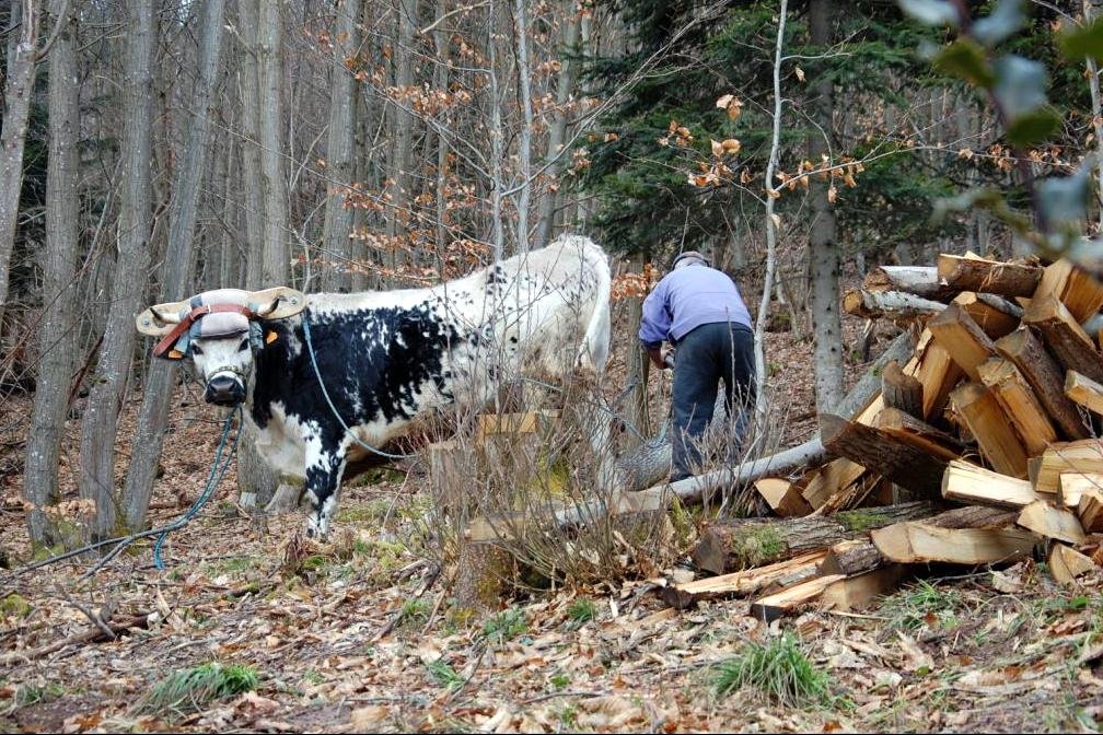Quand on fait appel à la mémoire des anciens de Breitenbach, village autrefois à vocation agricole, viticole et forestière, les souvenirs concernant les attelages bovins affluent. Il faut dire qu’à l’époque, les chevaux étaient beaucoup plus rares, car leur entretien revenait plus cher (en 1927, 3 juments, 49 boeufs de travail recensés). De plus, il fallait un permis pour ferrer les équidés; pour les bovins, ce n’était pas nécessaire. Et quelquefois, les vaches faisaient aussi l’affaire! La solidarité était de mise, les villageois s’associaient, mettant leurs animaux en commun pour former un attelage, utilisé tantôt par l’un, tantôt par l’autre. Joseph se souvient: « Mon grand-père attelait des vaches, mais elles ne pouvaient pas donner de lait et être attelées. Alors, il a cherché un « allié ».