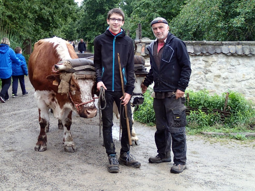 André Kammerer en compagnie de Corentin, son petit fils, aux rencontres de bouviers 2018 à l’écomusée d’Alsace (photo Cozette Griffin Kremer)