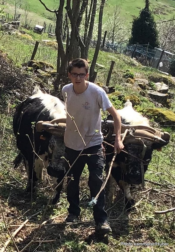 Johnny Krau est double actif et exploite une petite ferme. Il attelle régulièrement deux vaches Simmental.