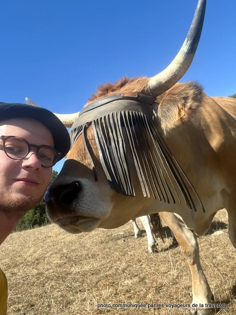 « Dans cette traversée, j’aurai deux compagnons de voyage avec un grand écart d’âge. Effectivement, je voyagerai avec Modestine notre génisse et mon grand-père André Kammerer.