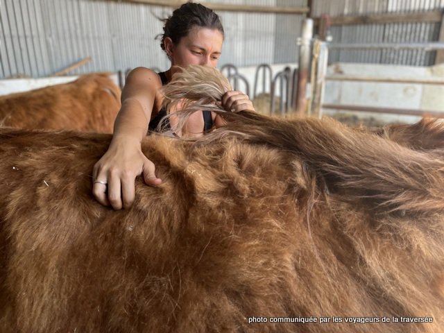 Par curiosité, Pauline a réalisé une séance sur l’un des bœufs, qui s’est avérée sportive vu leur taille et leur corpulence mais pour une première, elle s’en est bien sortie. On aurait dit une enfant devant le nouveau jouet de l’année, des paillettes dans les yeux à l’idée de poser ses mains dessus et d’essayer ses techniques manuelles. Un tabouret n’aurait clairement pas été de refus vu la taille…