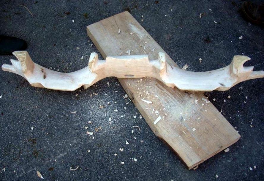 Il fallait cependant trouver la pièce de bois à tailler. Une amie, Martine Hunimels, avait son grand-père qui avait fait débiter un hêtre dans les années 40 en vue d’en faire des jougs. Ces pièces de bois était toujours dans « l’aizu » depuis plus de trente ans dans un pré de la ferme de Savault (Ouroux-en-Morvan 58).