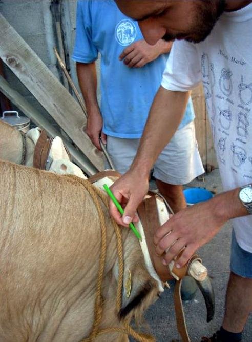 5. L’auteur travaille en Suisse avec deux vaches: avec un collier bovine traditionnelle (à droite) et le col suisse simplifiée (gauche).