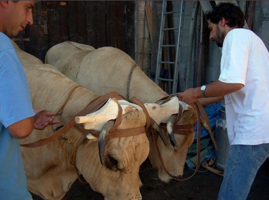 Après le dressage de ces deux Gascons originaires des Pyrénées Ariègeoises , il fallut former des personnes compétentes au travail du sol et à l’utilisation des bovidés, trouver les derniers selliers-harnacheurs fabricant des colliers adaptés, des jougs sur mesure…