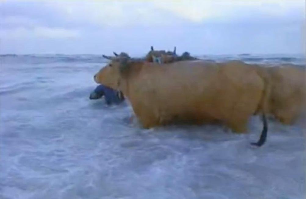 Image tirée du filmVoir le film : en cliquant iciTravail des labours avec une charrue tirée par des vaches en Haute-Vienne en 1979.