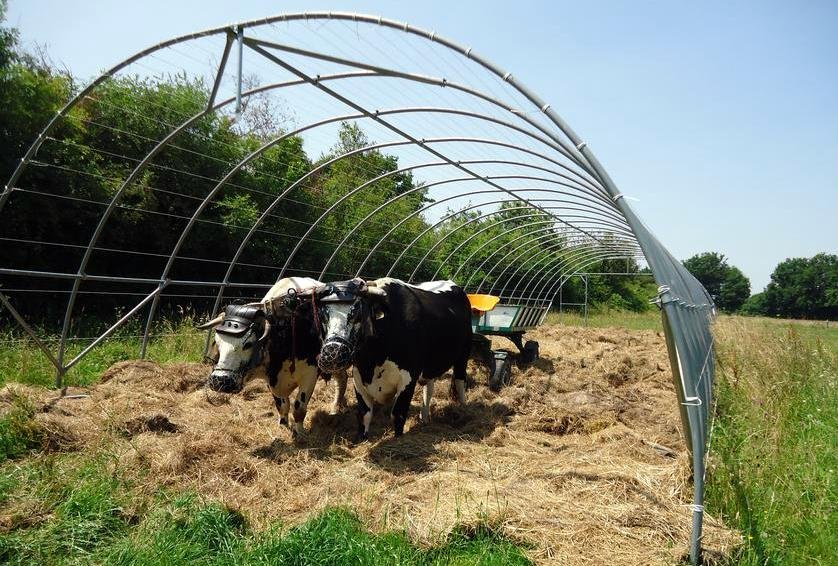Quant à nous, si nous sommes heureux du travail que nous effectuons avec les bœufs, nous n’avons pas envie de nous auto-proclamer « bouviers ». Nous nous documentons, recherchons des infos, expérimentons sur la base de notre bon sens … Il faudra encore quelques années, d’autres dressages, d’autres utilisations avant de se targuer de Savoir ! »