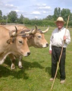 A ma retraite il y a plus de 20 ans, j’ai pu réaliser cette passion. J’ai maintenant 3 paires de bœufs Salers, Aubrac et Vosgien ainsi que 2 paires de chevaux de trait et une jument de selle que j’ai encore la chance de monter à 90 ans.