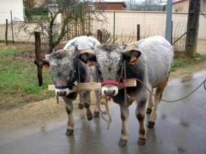 Traditionnellement, en France, les bovins sont en général attelés avec un joug double, principalement pour les raisons suivantes: