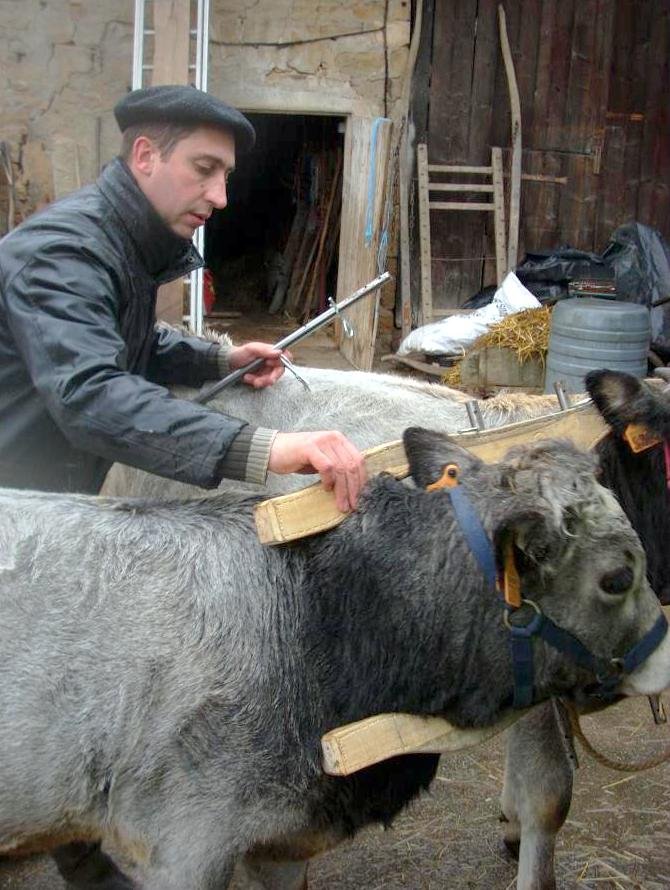 La longue expérience et le recul de cet éleveur/dresseur de la haute vallée de Munster, dont la seule force motrice au quotidien sur sa ferme est la traction animale bovine, lui permettent de transmettre et de faire partager un savoir appris auprès des anciens et peaufiné par sa pratique de chaque jour depuis de longues années.