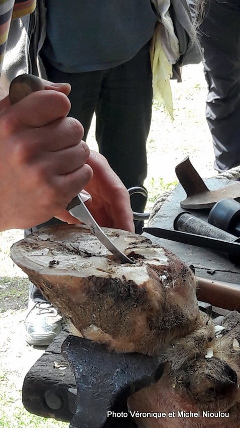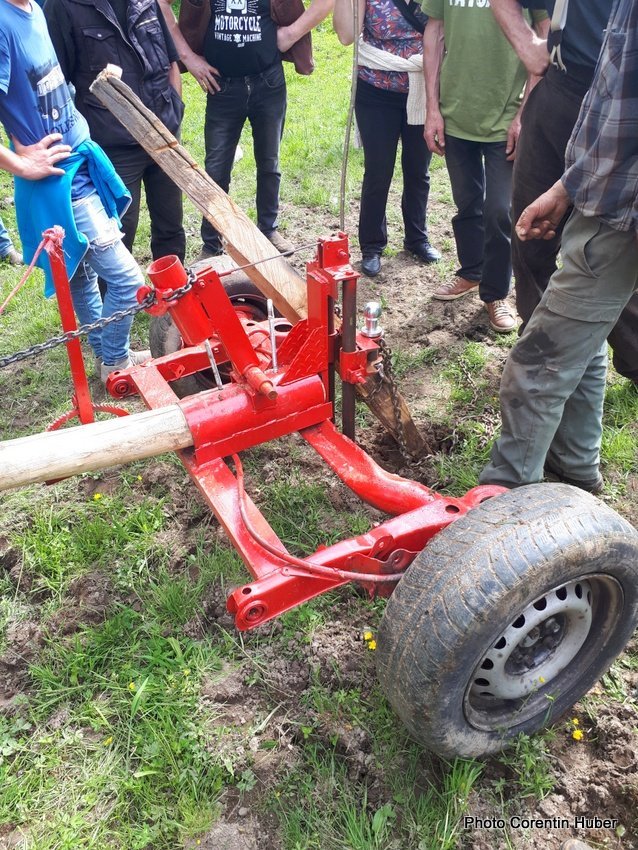 Il a donc fallu apprendre à Tino à tirer pour pousser l’outil. Lors de la préparation et pour la présentation,  je suis aidé par Emile qui sera à la manœuvre du vallus mais aussi par Elian qui sera rabatteur.
