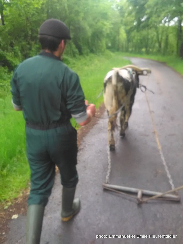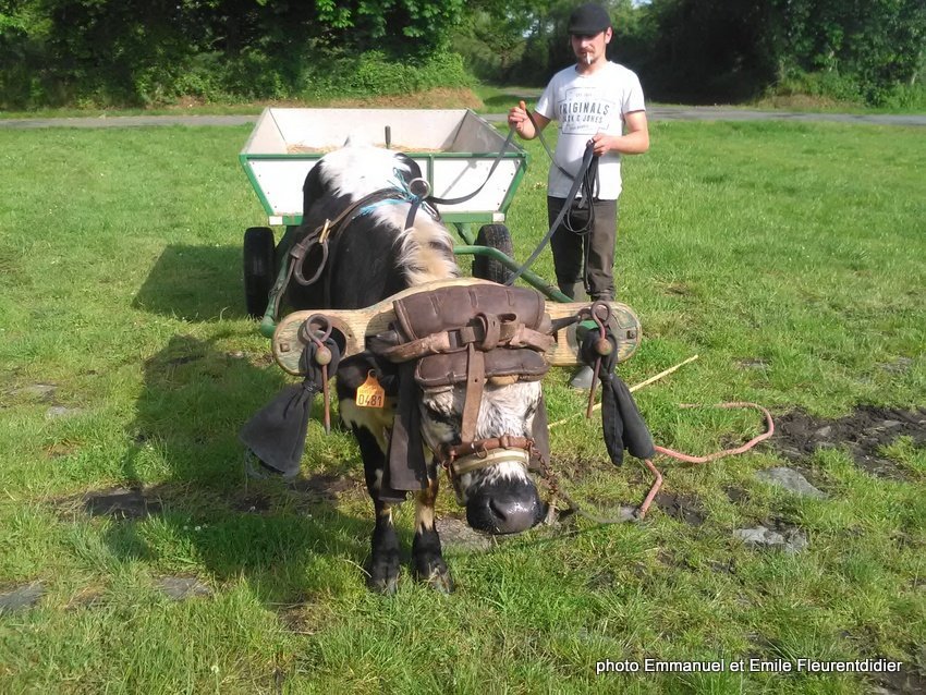 Emile Fleurentdidier a toujours été au contact des animaux de travail dans sa famille et en particulier avec Emmanuel Fleurentdidier, son père. Vers l’âge de 8 ans (il en a 15 aujourd’hui) il mène seul sa première paire de boeufs.
