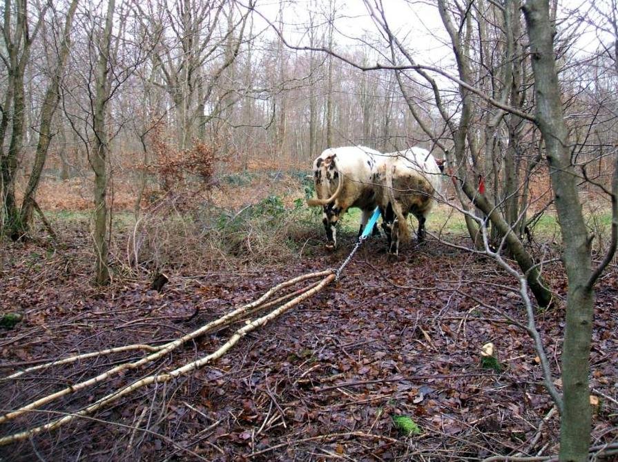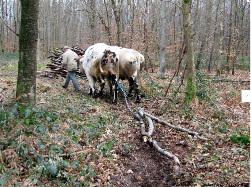 Ses bœufs ramassent le bois en forêt de Lyons