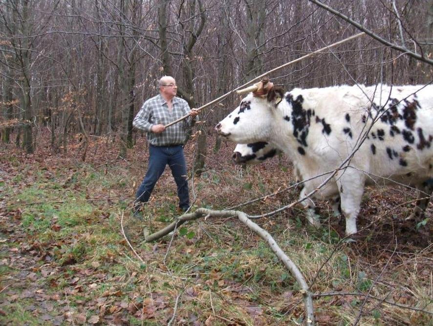 Et puis un soir le déclic, on s’y est mis tous les trois et aujourd’hui ceux sont deux beaux bœufs de sept ans aux ordres qui connaissent bien ce boulot de débardage et qui ont une belle vie en troupeau avec mes deux bœufs bretons de neuf ans même s’ils ne sont pas dominants malgré leur taille.