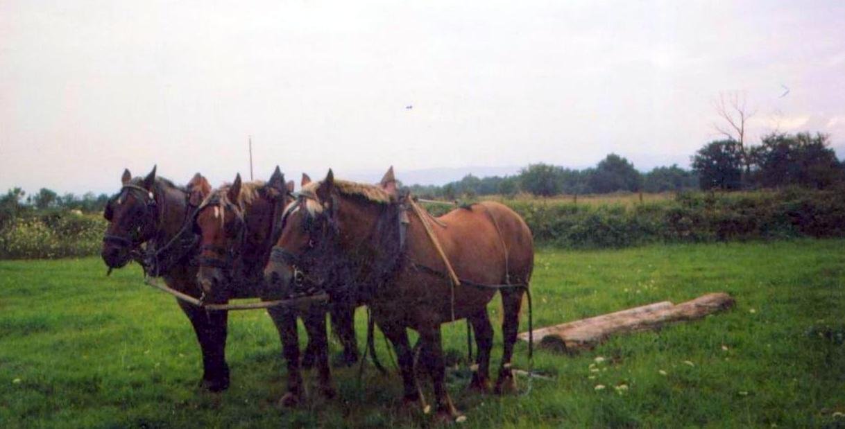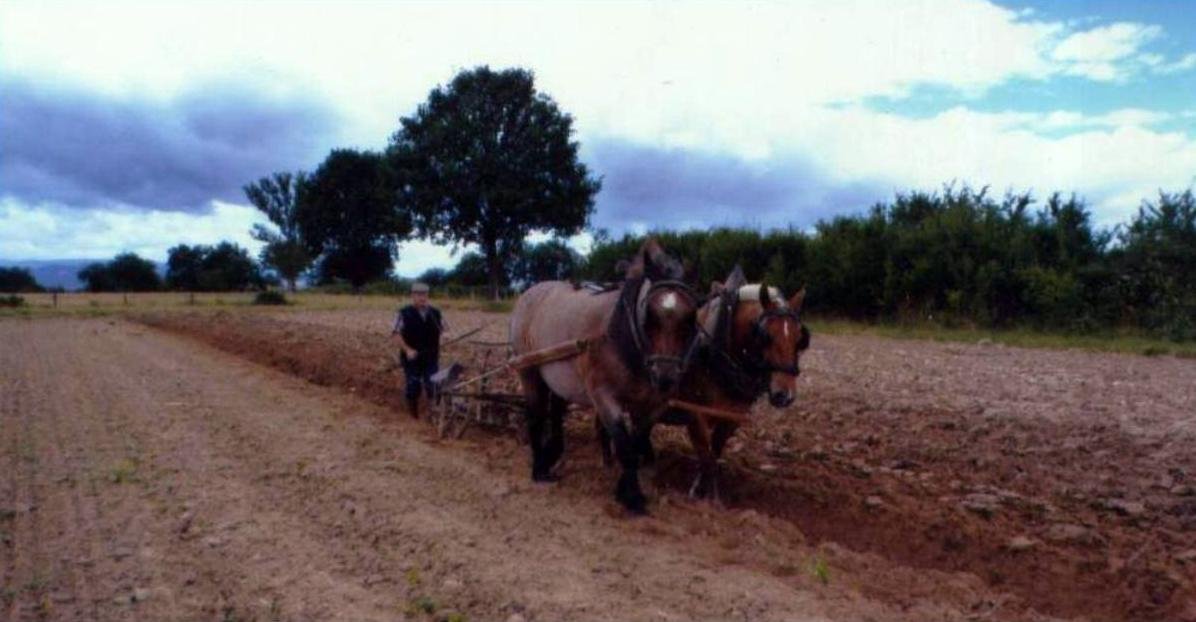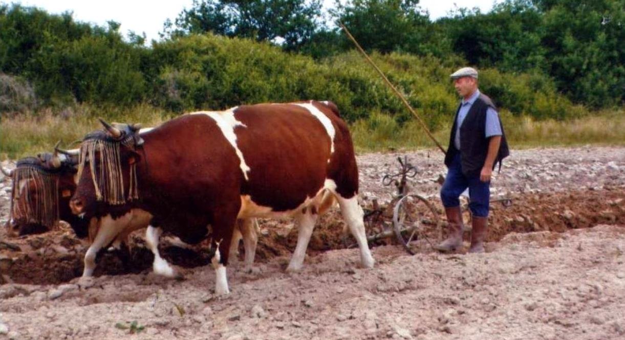 Gérald Dumont attelle actuellement une paire de vaches ferrandaises pour cultiver ses terres. Il travaille aussi avec ses chevaux.