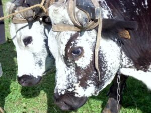 Les deux animaux très sociaux, calmes et gentils, sont actuellement dans l’apprentissage du joug, de la marche couplée et du respect des ordres et de l’arrêt.