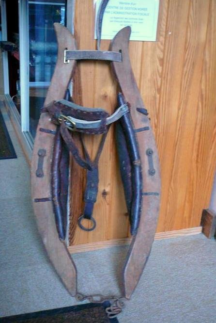 De son côté, Corentin est parti sur une tout autre piste en se laissant inspirer par une observation attentive des avantages et des inconvénients du joug de garrot et du joug de tête. Donc, il invente une transition du premier au deuxième. Or, les bœufs n’ont pas l’habitude du joug de garrot et passent par quelques moments d’hésitation. Pourtant, ils réagissent rapidement et bien à la nouveauté, surtout parce qu’ils ont l’habitude de travailler ensemble, et que Corentin est un meneur expérimenté. Il lui suffit de leur mettre le joug de garrot, de dérouler le coussin feutré sur le front, d’attacher la courroie-ceinture à boucle sur le front, d’enlever la goupille pour détacher les arcs et, voilà, qu’un joug en devient un autre !
