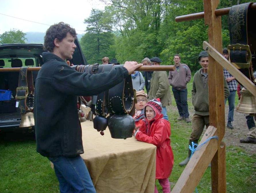 Fidèle participant de chaque réunion en Alsace, Jean-Claude Mann, le bourrelier, apporte toute sa panoplie pour la fête, des sonnailles à vaches encore utilisées en transhumance aux exemples de harnachement en cuir qu’il fabrique. Il encourage vivement les enfants et les autres visiteurs à essayer toutes les sonnailles – une belle publicité qui n’a pas besoin de sono… À ce propos, un fermier des hautes terres et expert collectionneur de sonnailles explique que ces cloches étaient surtout destinées à protéger les animaux en effrayant les vipères et permettaient aux vachers de les retrouver, lorsque la brume tombait. Il cultive ce passe-temps avec passion et dévouement, en constituant des archives aussi complètes que possible sur chaque pièce, comme celle datée de 1925 qu’il nous a montrée. À l’époque, on ne rivalisait pas à qui avait le plus grand tracteur. C’était à celui qui avait les plus belles vaches avec les plus belles cloches. En toute logique, il s’intéresse également au vocabulaire laitier de l’alsacien, car chacun sait combien il est urgent de sauvegarder les volets traditionnels de la langue.