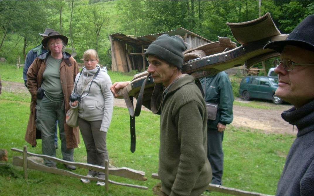 Le Valtin étant tout proche de musées consacrés aux métiers du bois, du débardage ou du schlittage, Philippe porte donc une schlitte jusqu’en haut de la pente, tandis que son équipe scie le bois, ramasse les branches et charge le traîneau que Philippe descend au pas de course, seule activité de travail effectuée sans les bœufs.