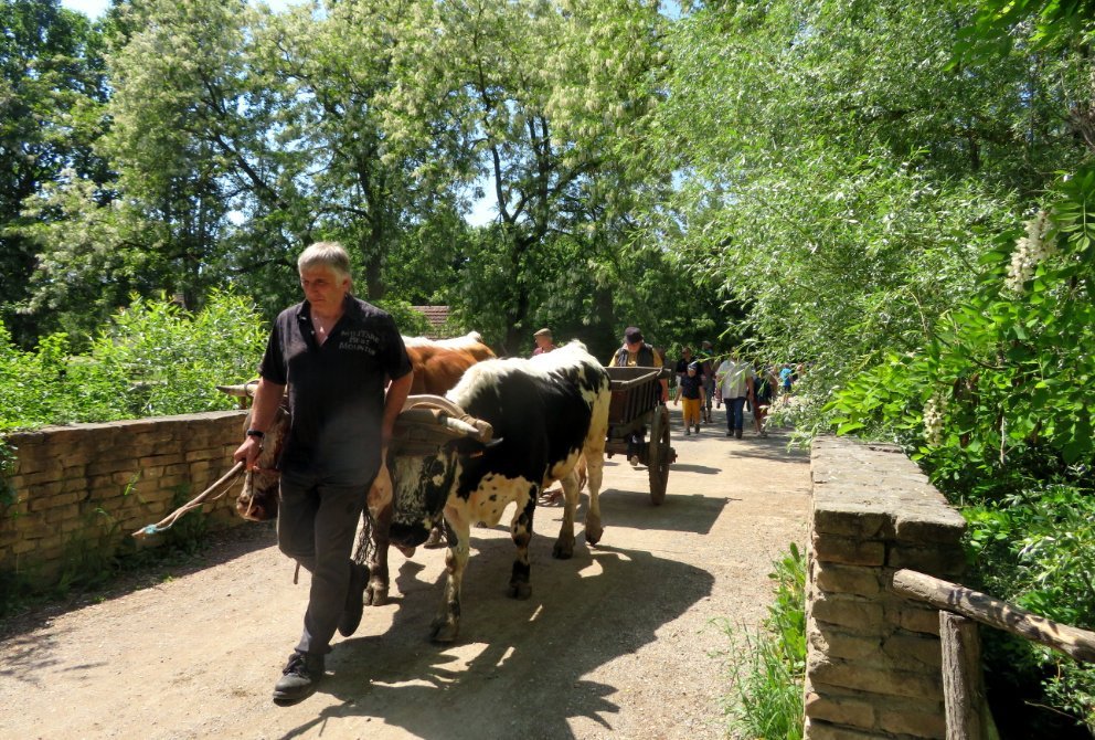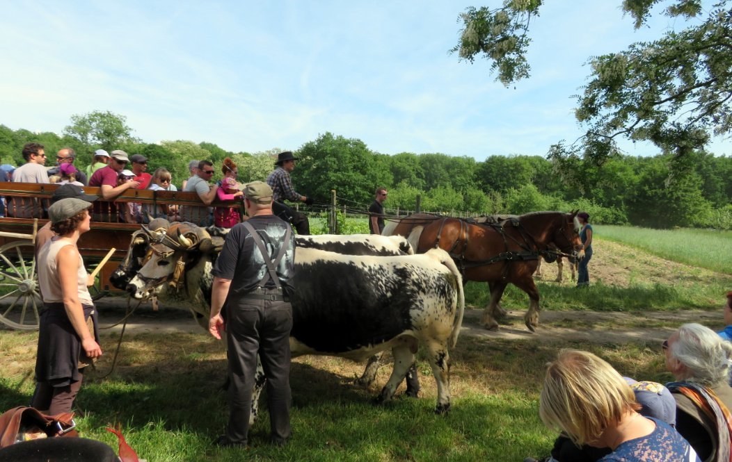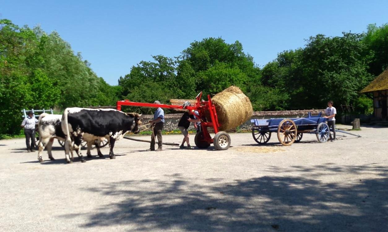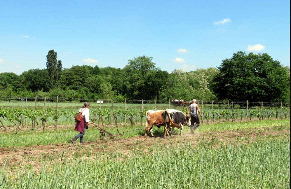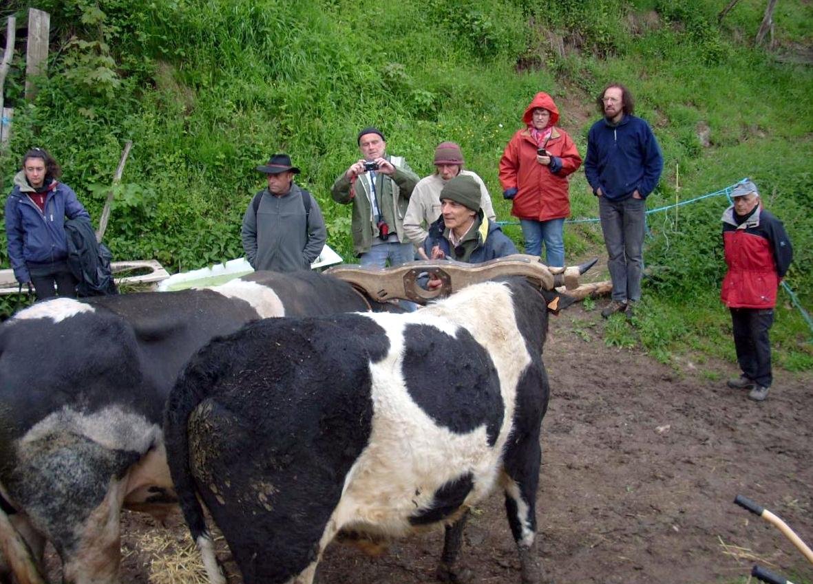 Le groupe de jeunes bouviers vendéens prouve qu’ils aiment chanter, mais ils prennent également le micro pour rendre compte de leur stage chez Michel Nioulou, pilote du blog « Attelages Bovins Aujourd’hui » et jougtier expérimenté. Très naturellement, le ludique se marie avec le pédagogique. Il y a des activités comme la démonstration de fauchage et d’andainage traditionnels sur la pente – une association de travaux intimement liés avec la traction bovine. Christine Arbeit, pilote du groupe Facebook des bouviers, informe régulièrement tout le réseau français des faucheurs sur les événements associés à l’attelage de bœufs, pour encourager tout le réseau de métiers essentiel à l’utilisation de la traction animale.